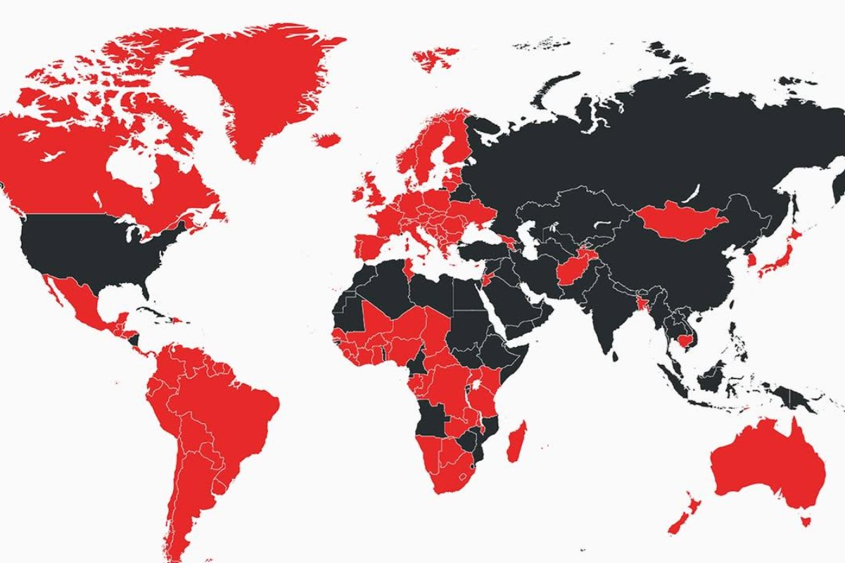 빨간색으로 그려진 나라들은 푸틴이 방문할 경우 그를 체포할 법적 의무가 있는 나라들이다. 보다 더 자세히 설명하자면, 빨간색으로 그려진 나라들은 국제형사재판소(ICC, International Criminal Court) 회원국들이다. ICC는 2002년에 설립되었으며, 2025년 현재 총 125개국이 가입해 있다. ICC는 전쟁범죄나 반인륜적 범죄를 저지른 용의자를 회원국의 법정을 대신해서 기소할 수 있는 권한을 지닌다. 단, 회원국의 법정이 기소할 의지나 능력이 없을 경우에 한하며, 용의자가 회원국 국민이거나 회원국의 영토에서 범죄가 발생했을 경우에만 개입할 수 있다. 미국은 빌 클린턴 행정부 시절 ICC 가입을 추진했으나 이후 집권한 조지 W. 부시 행정부가 가입을 철회했다. ICC가 미국 군인..